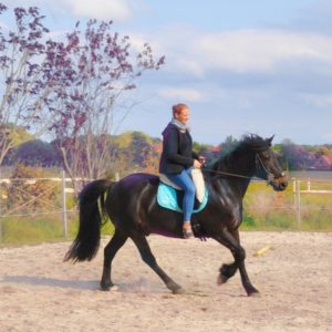 Ich werde immer mal wieder nach Reitunterricht gefragt. So ganz „klassisch“ bin ich da aber einfach nicht. Also gebe ich Reitunterricht auf meine Art – für mich gibt es auch hier nicht nur eine Wahrheit. Ich bin recht flexibel, was die Reitweise und die Ausrüstung angeht ~ was zählt ist ein harmonischer und abwechslungsreicher Umgang miteinander. Ich finde es total wichtig, daß Pferd und Reiter sich „verstehen“. Darum mache ich auch selbst viel Bodenarbeit, und ich longiere für meinen Leben gern, sowohl normal als auch mit Doppellonge. In all diesen Bereichen kann ich sowohl meine Kunden bei ihrer Arbeit mit den Pferden unterstützen, als auch selbst mit den Pferden der Kunden arbeiten.