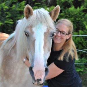 … ist ein 2001 geborenes Haflinger-Mädchen, die mich nun seit 2015 begleitet. Ich habe damals nach etwas ganz anderem gesucht. Und dann hab ich in diesem zauberhaften Pferd genau das gefunden, was ich gebraucht habe. Das Probereiten war eine Katastrophe ~ weil ich körperlich total schief war und sie genau das reflektiert hat. Ich war vom ersten Moment an total berührt von diesem feinfühligen Pony und ihrer lieben Art, auch Kindern gegenüber. Beim Reiten hat sie mir immer wieder total viel Freude gemacht, sie hat einige Jahre im Reitverein als Voltigierpferd unterstützt und Turniere besucht, und meine Töchter haben auch gern auf ihr rumgeturnt und lieben es nach wie vor, sie zu putzen und zu betüdeln. Leider ist sie seit ein paar Jahren nach einer Verletzung nicht mehr reitbar, doch die Kinder lieben es trotzdem noch, Zeit mit ihr zu verbringen. Sie ist und bleibt mein Herz-Pferd – nicht nur wegen ihrem herzförmigen Fleck an der Nase.